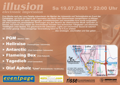 Eine Woche nach der Love Parade präsentieren die Macher der Intravenös und Technophobia ein Event der Extraklasse, um Euch ein Hauch der Faszination aus Berlin nach Bremerhaven transportieren zu können.