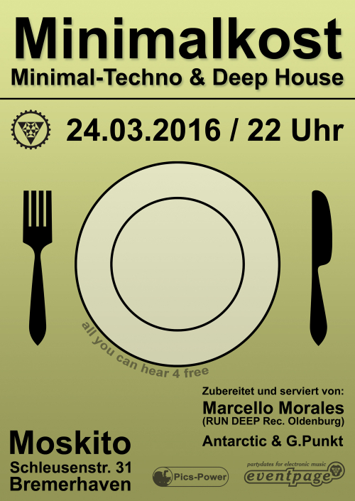 Entgegen des recht breit gehaltenen musikalischen Konzepts (Techno, Trance, Drum'n Bass) der Headphones, orientiert sich die Minimalkost sehr stark an Minimal-Techno, Deep-House und verwandten elektronischen Styles. Als Locations eignen sich besonders Bars, Lounges und kleine Clubs, die evtl. durch Projektionen, Deko-Elemente oder Lichteffekte ergänzt werden. Im Vordergrund steht bei dieser Veranstaltungsreihe nicht unbedingt der Tanz, sondern eine positive, entspannte und angenehme Atmosphäre in den Locations herzustellen. Die Gäste werden während eines Gesprächs oder beim Genuss eines Getränkes mit neuesten minimalistischen, groovigen und elektronischen Sounds verwöhnt. Den Dj`s bietet diese Plattform eine ganz besondere Auseinandersetzung mit ihrer Musik, da es nicht mehr nur auf die Tanz-Kompatibilität ankommt, sondern einen variantenreichen Sound zur Unterhaltung ihres Publikums zu erzeugen. Wir wünschen Euch auch weiterhin viel Vergnügen beim Besuch des Veranstaltungskonzepts des guten Geschmacks.